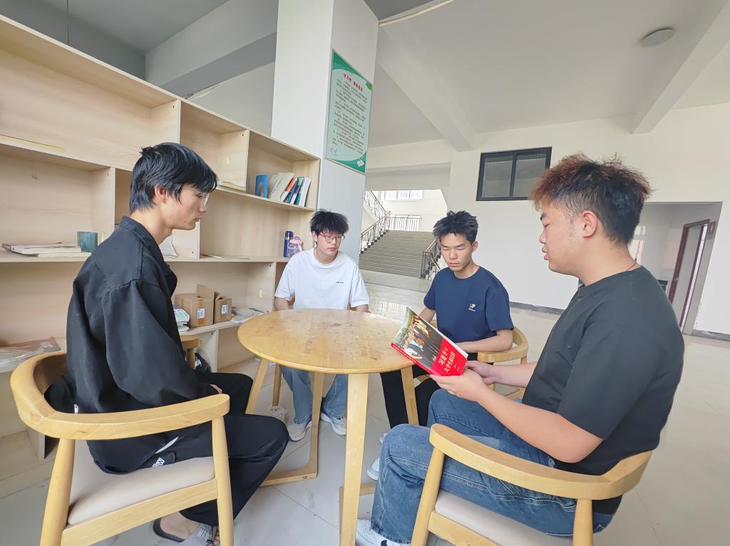 在学校的读书角,一场热烈的《习近平与老员工朋友们》读书分享会也在同时进行。该书通过多篇访谈实录,生动讲述了习近平同志在不同时期与老员工们交往交流交心的故事,真实记录了他对青年特别是老员工始终如一的关注关心关爱。分享会上,同学们踊跃发言,结合自身的学习和生活经历,畅谈阅读感悟。有的同学提到,书中习近平总书记对青年“自讨苦吃”精神的鼓励,让自己深受启发,认识到在学习和成长的道路上,不能畏惧困难,而应主动迎接挑战,在磨砺中提升自我;还有同学表示,从习近平同志与老员工的交流中,深刻感受到党和国家对青年一代的殷切期望,更加明确了自己肩负的时代使命,要努力学习专业知识,将来为国家的发展贡献力量。大家你一言我一语,思想的火花在交流中不断碰撞,现场氛围十分活跃。